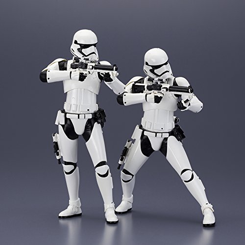 リーズナブルで集めやすいサイズ。スター・ウォーズの新スタンダード ARTFX+ シリーズにて「スター・ウォーズ/フォースの覚醒」商品化決定!初 ARTFX+ 化は、ファースト・オーダー ストームトルーパー!コトブキヤの「スター・ウォーズ/フォースの覚醒」ARTFX+ 第一弾「ファースト・オーダー ストームトルーパー2パック」が映画公開に合わせ 2015 年 12 月に発売!豊富な差し替えパーツの組み替えにより 6 種のポーズが楽しめる他、ブラスターライフルはロング/ショートの 2 種が付属するので計 12 通りの展示が可能。2 体セットなので、組み合わせれば幾通りもの展示が楽しめます。商品は塗装済みの組み立てキットなので開けてすぐに飾れます。足裏にはマグネットが入っており、鉄板入りのスクエア台座を使って自由度の高いディスプレイをお楽しみいただけます。自分だけの世界観を作りましょう。Feature