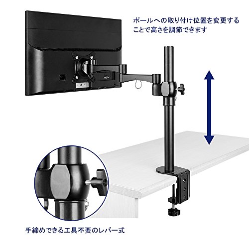液晶ディスプレイを1台設置できるモニターアームです。水平方向の移動が自由にできる多関節タイプです。取り付け可能天板: 厚さ:10~80mm奥行き: 100mm以上