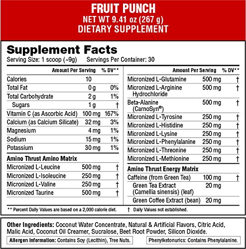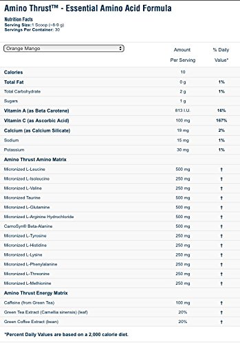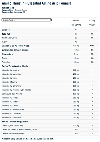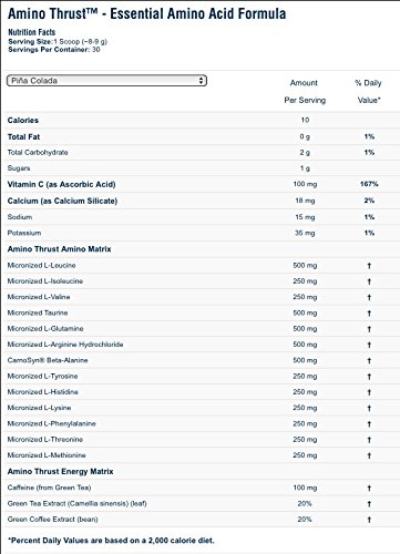 -. Binding : Health and Beauty -. Brand : Labrada -. Feature : Muscle Recovery * Energy * Endurance / Mixes Easily in Cold Water * BCAA's with 2:1:1 Ratio (fermented) / Contains: Glutamine * Taurine * Tyrosine* CarnoSyn Beta-Alanine and Histidine * Arginine * PLUS other Amino Acids / Sugar Free * NO Artificial Flavors / AMINO THRUST delivers Real Ingredients, Real Potency, and Real Results -. Label : Labrada Nutrition -. LegalDisclaimer : Keep out of the reach of children. Please follow all manufacturer warnings and directions. Consult your physician before use, if you have any questions/concerns, or if you experience any unusual symp. Please check the ingredients to verify acceptance by athletics and military associations. -. Manufacturer : Labrada Nutrition -. PackageQuantity : 1 -. ProductGroup : Health and Beauty -. ProductTypeName : HEALTH_PERSONAL_CARE -. Publisher : Labrada Nutrition -. Studio : Labrada Nutrition -. Title : Labrada Nutrition Amino Thrust Essential Amino Acid V2 Formula