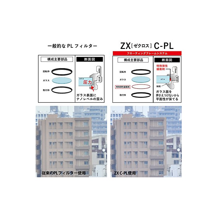 원본상품명: Kenko PLフィルタ ZX サキュラPL 62mm 高透過偏光膜採用 撥水撥油コティング フロティングフレムシステム 542620