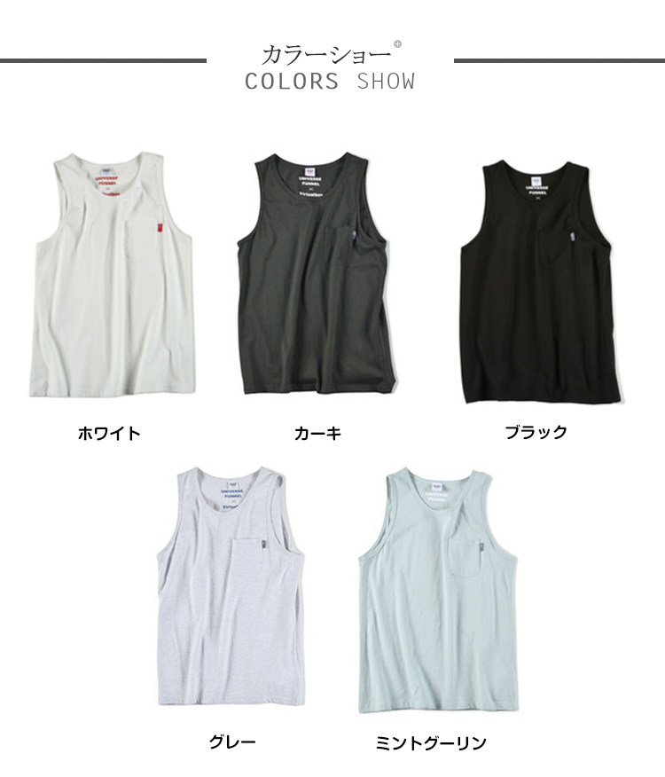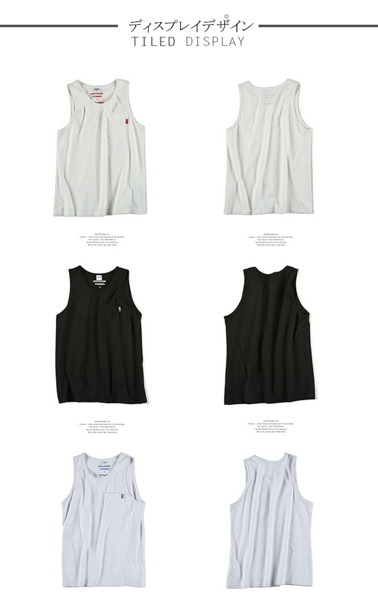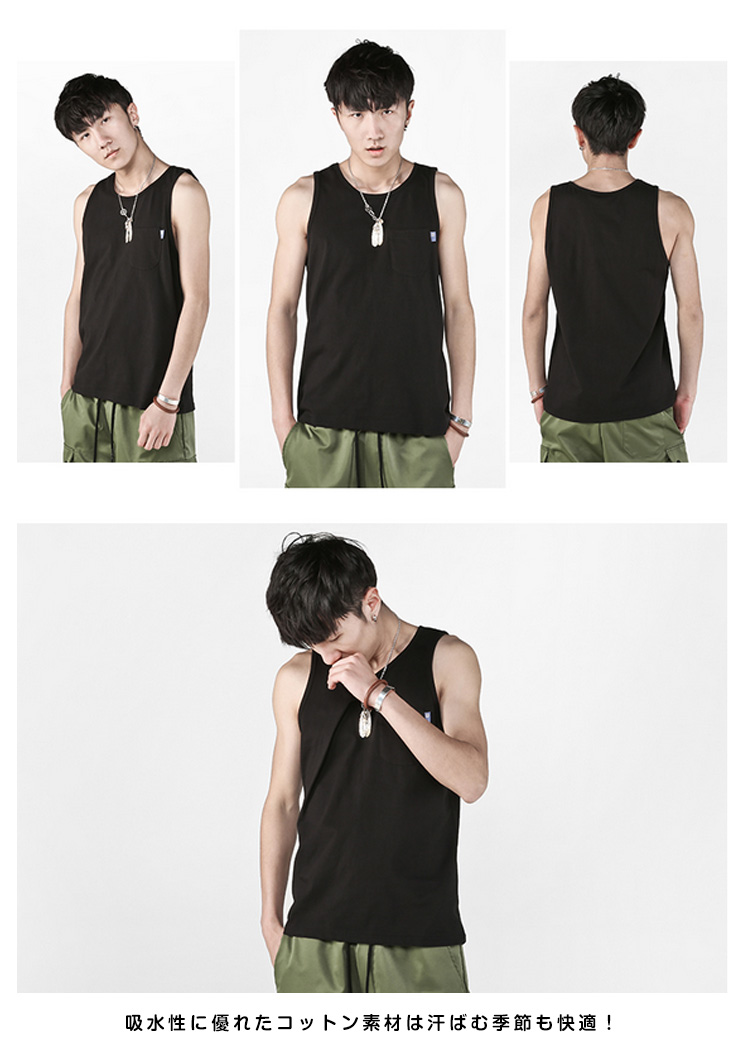 | 夏のメンズコーディネートには欠かせないタンクトップ!サイズ感もピッタリ過ぎず、大きすぎない納得のシルエット!!吸水性に優れたコットン素材は汗ばむ季節も快適! | |
