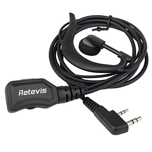Retevis R-111 G Shape Earpiece 2 Pin PTT Adjustable Volume for Kenwood Retevis BAOFENG TYT WOUXUN Two Way Radio (Black,1 Pack)