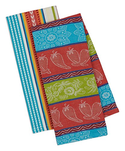 Design Imports Baja Cantina Cotton Southwest Table Linens, Dishtowel 18-Inch by 28-Inch, Set of 2, 1 Chili Pepper and 1 Baja Stripe