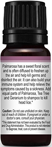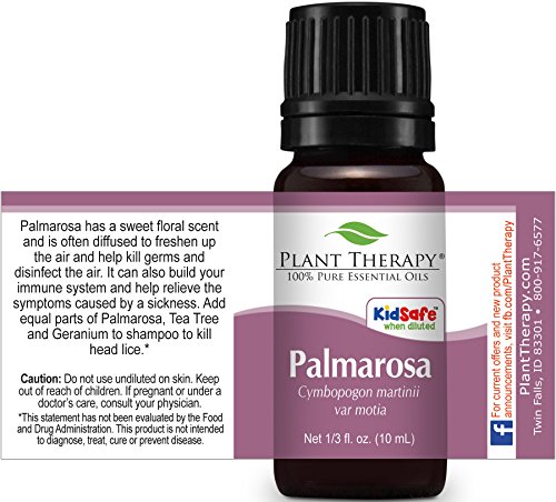 -. Feature : Botanical Name: Cymbopogon martinii var motia / Aromatic Scent: Palmarosa Essential Oil has a sweet, floral fragrance with a hint of rose / 100% Certified Pure Therapeutic Grade Essential Oil- no fillers, additives, bases or carriers added. / Have Questions? Message one of our Certified Aromatherapist through Amazon messages / At Plant Therapy we also have some other selections you may be interested in. Includes: Basil, Bergamot, Cajeput, Carrot, Cedarwood, Chamomile, Cinnamon, Citronella, Clary Sage, Clove, Cypress, Eucalyptus, Fir, Frankincense, Garlic, Germanium, Ginger, Grapefruit, Helichrysum, Lavender, Lemon, Lime, Mandarin, Marjoram, Myrrh, Neroli, Naiouli, Nutmeg, Orange, Oregano, Patchouli, Peppermint, Pine, Rosemary, Spearmint, Tangerine, Tea Tree, Thyme, Vetiver, Vanilla, Wintergreen, Ylang Ylang.