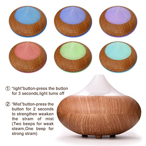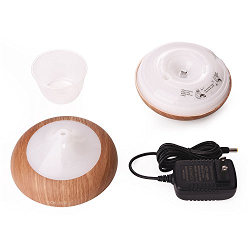 7 COLOR LED LIGHTS: Relaxing, therapeutic multi-mode mood-enhancing LED light of this Aromatherapy Diffuser illuminates nearly the main tank cover, smoothly fading through 7 colors in a 1 minute cycle. Set to any fixed color as a night light; or turn off the light (continues to diffuse mist). Press the "light" button for 3 seconds, light turns off.