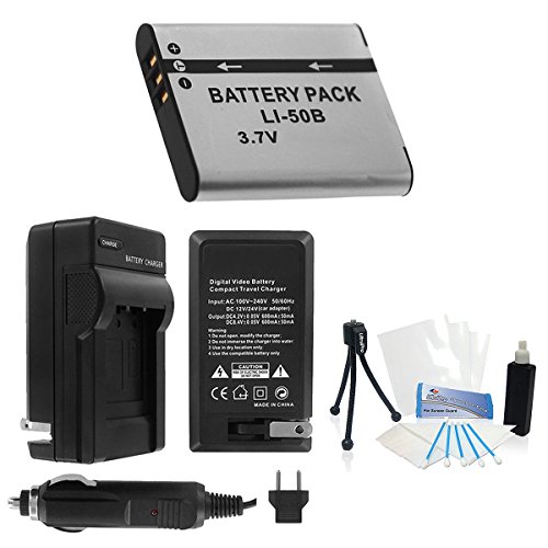 LI-50B High-Capacity Replacement Battery with Rapid Travel Charger for Select Olympus Digital Cameras. UltraPro Bundle Includes: Camera Cleaning Kit, LCD Screen Protector, Mini Travel Tripod