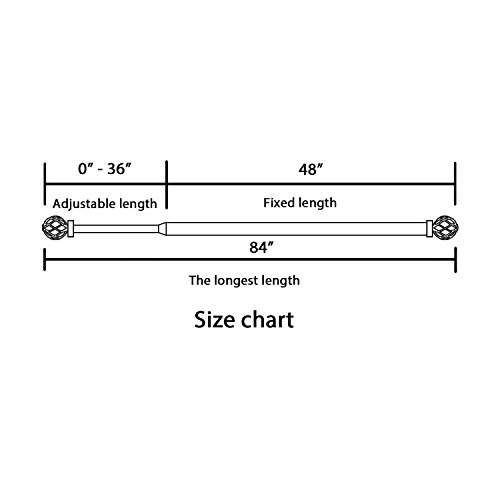 H.Versailtex manufactures this adjustable decorative curtain rod set, the renovated high quality brings a simple and clean look to any room while supporting any desired drapery. It telescopes to fit any window size and is available in three solid color finishes to fit any preference. Great choice for grommet, back tab, rod pocket and tab top curtains. This classic standard curtain rod is ideal for living rooms, bedrooms, dining rooms and kitchens. More Features - 1 set of high quality steel adjustable curtain rod (1 outer rod and 1 inner rod), 3 mounting brackets and 2 metal finials.