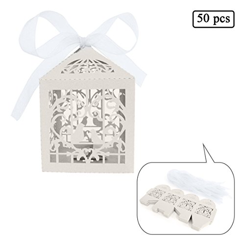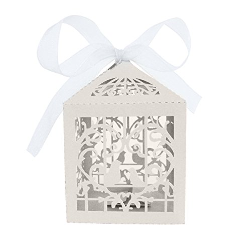 E-Goal 50PCS/Set Heart and Bird Pattern Laser Cut Wedding Party Candy Box With Ribbon-White