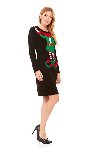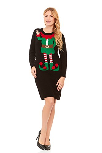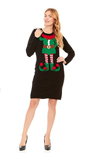 Just One Women's Knit Ugly Christmas Sweater Dress Xmas For Women (Elf Collar, L)