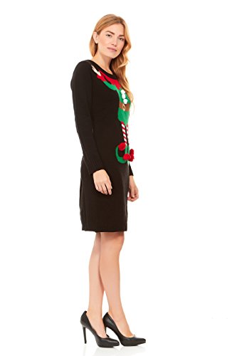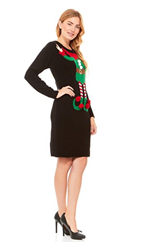 Just One Women's Knit Ugly Christmas Sweater Dress Xmas For Women (Striped Elf, XL)