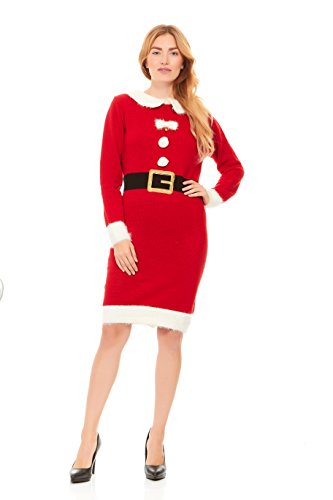 Just One Women's Knit Ugly Christmas Sweater Dress Xmas For Women (Mrs. Claus, L)