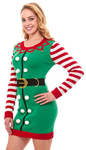 Just One Women's Knit Ugly Christmas Sweater Dress Xmas For Women (Elf Collar, M)