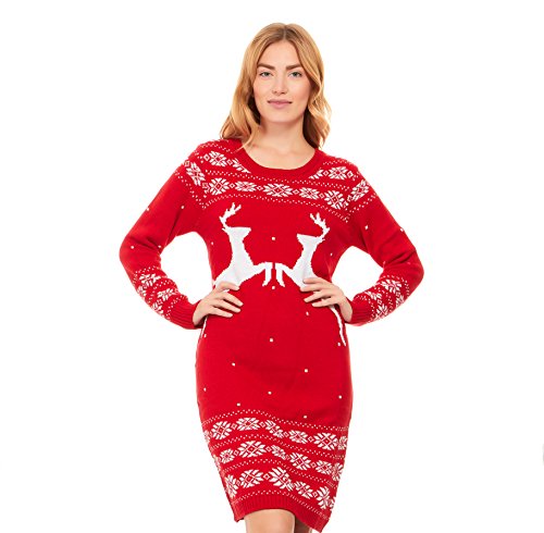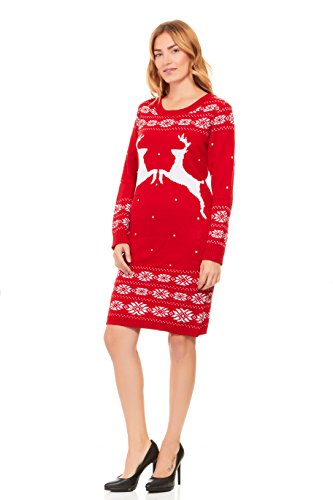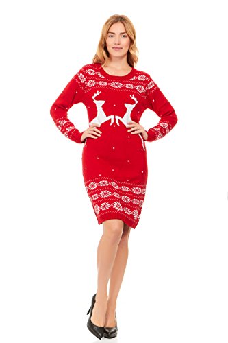 Just One Women's Knit Ugly Christmas Sweater Dress Xmas For Women (Fair Isle, L)