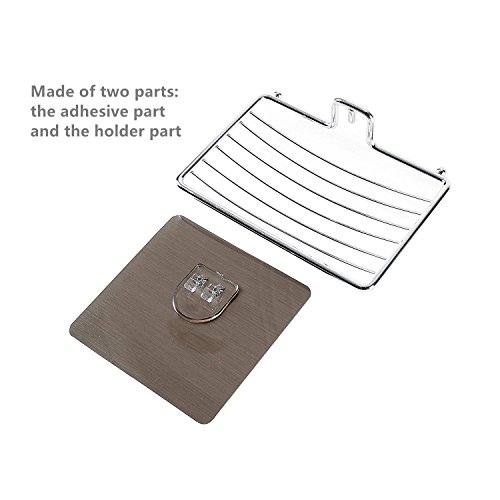 Soap Dish Holder, Self Adhesive Soap Saver Organizer for Bathroom Shower/ Kitchen-Waterproof, Easy to Drain (Chromed)