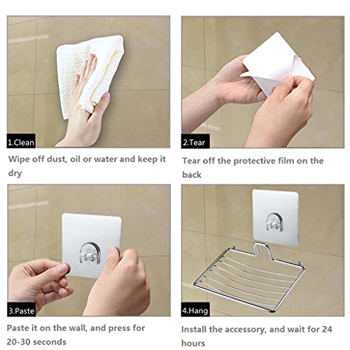 - Easy to install: No tools needed. No damage to the wall. Just need to clean the area and keep surface dry thoroughly before adhering the soap dish to the surface.