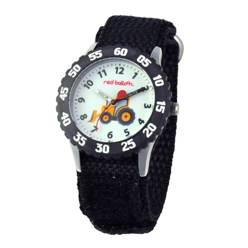 -. Binding : Watch -. Brand : Red Balloon -. Color : Black -. Department : unisex-child -. EAN : 0843231062795 -. Feature : Round Time Teacher Stainless Steel Watch with bulldozer on dial and Red Balloon style seconds hand. / Meets or exceeds all US Govt requirements and regulations for Children's watches. / Recommended for Ages 3-7 years old. Includes a Time Teacher Punch Out clock for Parents to Teach their Children. / Accurate Japanese Quartz movement, scratch resistant mineral crystal, hook and loop Nylon strap / Water Resistant to 99 feet: withstands rain and splashes of water, but not showering or submersion. / 1 Year Limited Manufacturers Warranty -. Label : Red Balloon -. Manufacturer : Red Balloon -. Model : W000330 -. MPN : W000330 -. NumberOfItems : 1 -. PackageQuantity : 1 -. PartNumber : W000330 -. ProductGroup : Watch -. ProductTypeName : WATCH -. Publisher : Red Balloon -. ReleaseDate : 2012-09-19 -. Size : NO SIZE -. Studio : Red Balloon -. Title : Red Balloon Kids' W000330 "Construction Site" Stainless Steel Time Teacher Watch -. UPC : 843231062795