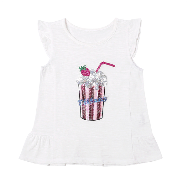 상세설명-화이트컬러에 스팽글장식이 되어 화려한 느낌으로 코디되는 면티셔츠입니다.