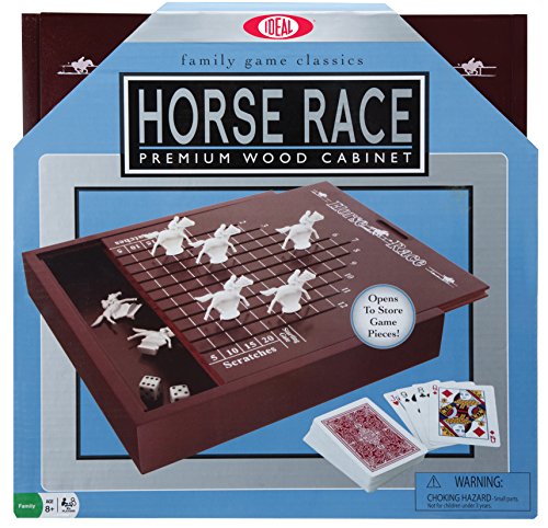 -. Feature : Classic game of Horse Race in a premium wood cabinet / Use cards to determine your horses and dice to move them forward / For 2 or more players, whoever wins the most money, wins the game / Includes wood cabinet playing board, 11 horses, deck of 52 cards, 2 dice and instructions / Recommended for children 8 years of age and older