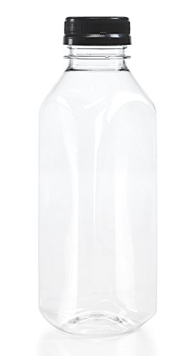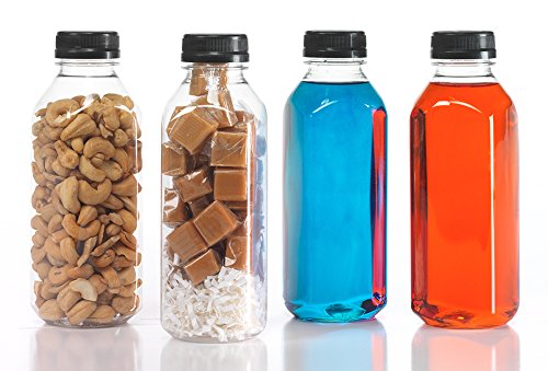 (8) 16 oz. Clear Food Grade Plastic Juice Bottles with Tamper Evident Caps (Square) 8/pack (16oz Plain)