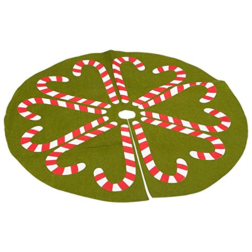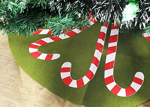 30-Inch Christmas Tree Skirt - Candy Cane-Style Xmas Tree Decoration, Felt Christmas Tree Décor, Green