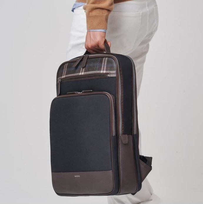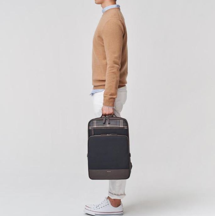 체크 패턴과 소가죽을 배색하여 포인트를 주었으며 나일론 소재를 사용하여 가벼운 백팩입니다.