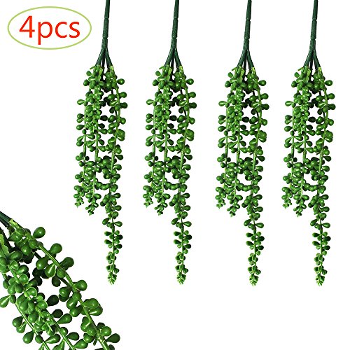 CEWOR 4pcs Artificial Succulents Hanging Plants Fake String of Pearls (15.7" Each Length)