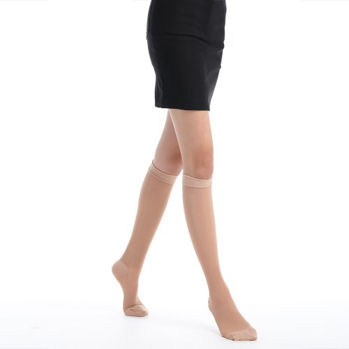 Fytto 1007 Women's Sheer Moderate Compression Socks,15-20mmhg,Knee High,Nude,Classic,Medium