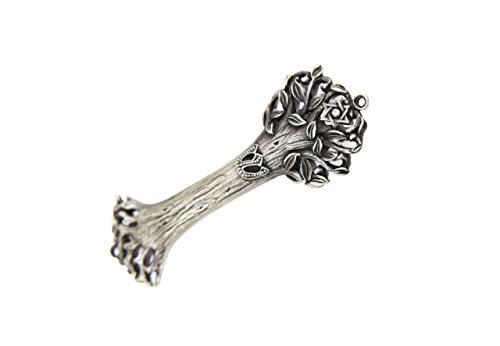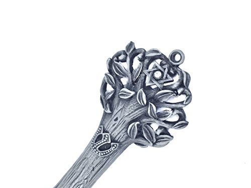 Bless This House With Tree of Life - Mezuzah Case, Wooden Texture Design and Crafted in Heavy Brass 4" For The Jewish Homes (Old Silver,Gray)