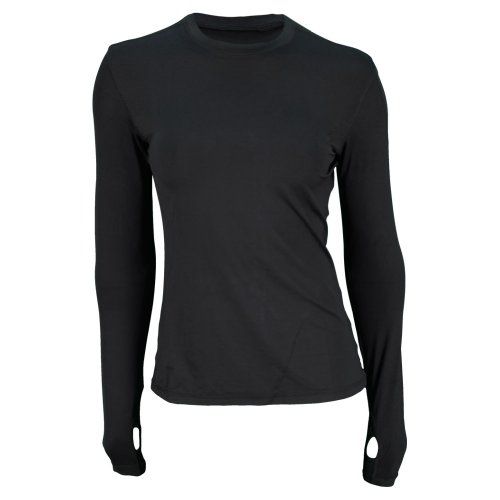 -. Feature : Long-sleeve moisture-wicking top with crew neckline and thumb holes / UV protection