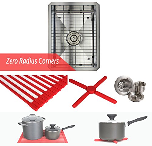 15 INCH Zero Radius Design 16 Gauge Undermount Single Bowl Stainless Steel Kitchen Bar Prep Island Sink Premium Package (15 INCH) KKR-F1520