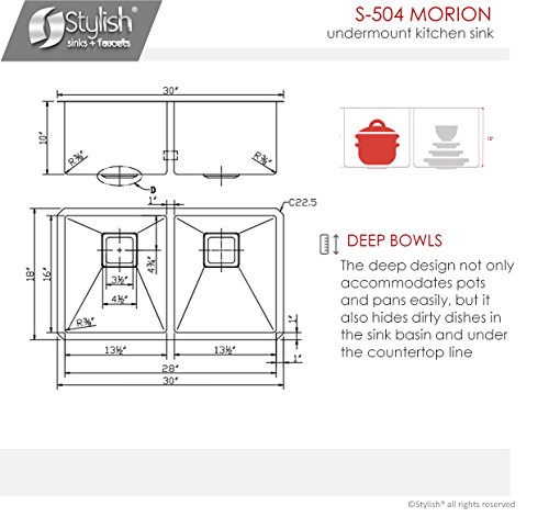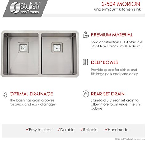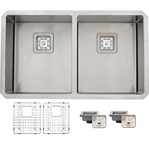 30 inch Undermount 50/50 Double Bowl Kitchen Sink,16 Gauge Stainless Steel ,Two Grids,Two Square Strainers, S-504XG