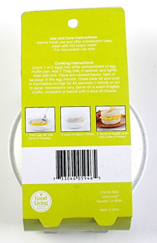 Breakfast is the most important meal of the day. What's easier than a breakfast sandwich? Well, if you don't have a little helper, they can take a little bit of time so you're probably stuck with cereal more often than not. Sometimes, you need a little more help to achieve that perfect balance at breakfast time when you don't have much time to spare. This egg muffin pan by Good Living is essential in the kitchen of any egg and/or breakfast lover. You don't have to dirty any pots and pans in the process. Follow the directions to assemble your ingredients and pop it in the microwave. In less than a minute, you have a perfectly-cooked breakfast sandwich that you can take with you out the door. Between uses, wash it in hot, soapy water by hand or put it in the dishwasher. Add this to your kitchenware today!Feature