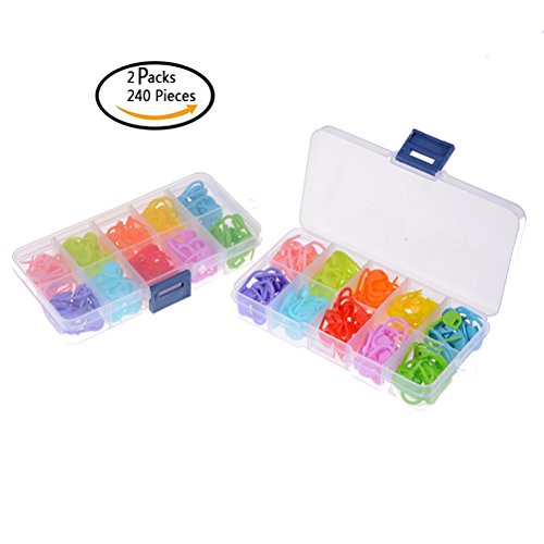 Package includes: 2 packs plastic stitch markers. Locking stitch markers set: 240 pieces plastic stitch markers in 10 colors, each color for 24 pieces.