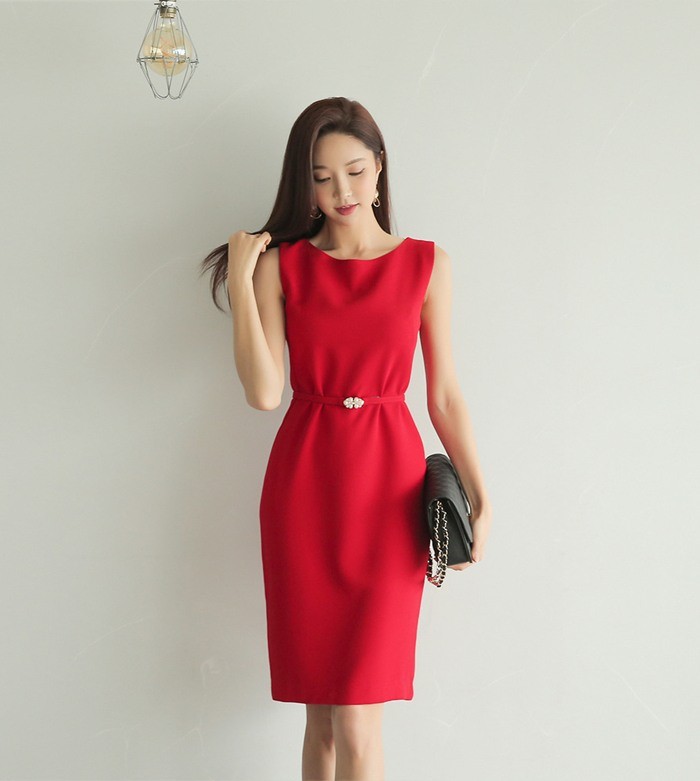 商品名:ワンピース タイトワンピース 無地 きれいめ 通勤 膝丈