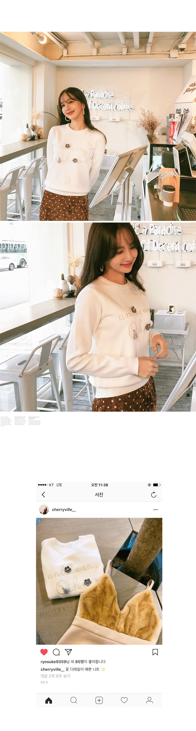 포인트 플라워가 너무 예쁜 데일리 니트입니다
