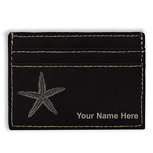 Money Clip Wallet, Starfish, Personalized Engraving Included (Black)