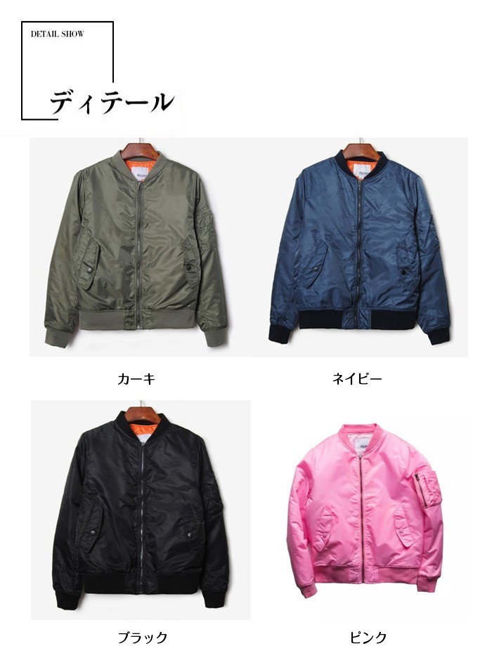 ジャケット メンズ MA-1 ブルゾンジャケット 長袖 無地 トップス カジュアルジャケット ミリタリージャケット 春アウター 2016秋冬新作 ミリタリージャケット メンズ MA-1 ブルゾンジャケット 無地さっと羽織るだけでクールに決まる存在感が魅力的なカジュアルコーデの定番ジャケットです!袖のリブデザインで、しっかりと隙間風を防いでくれますのが嬉しい。これからの季節にさらっと着ることができ、コーディネイトの幅が広がります。商品詳細:素材:ポリエステル100%カラー:カーキ ブラック ネイビー ピンクサイズ:M L XL 2XL 3XL 4XL 5XL袖丈:長袖スタイル:ファッション季節:春秋原産地:中国ジャケット メンズ MA-1 ブルゾンジャケット 長袖 無地 トップス カジュアルジャケット ミリタリージャケット 春アウター 2016秋冬新作 ミリタリージャケット メンズ MA-1 ブルゾンジャケット 無地
