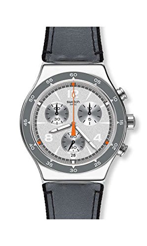 Swatch Last Round YVS446 Silver Leather Swiss Quartz Fashion Watch