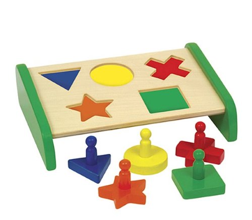 -. Feature : Match Shapes and Colors / Helps Children Practice Geometric Recognition and Counting as Well as Color and Shape Sorting Skills / Color-Coded Shapes and Base with Easy-Grip Handles Aid Young Children in Successfully Completing the Puzzle While Developing Fine Motor Skills / Raised Base Accommodates Floor or Tabletop Play / Sturdy Wooden Construction Guarantees Years of Creative Learning and Play