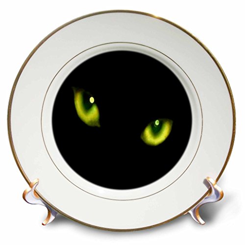 3dRose cp_6022_1 Green Eyes of a Black Cat Porcelain Plate, 8-Inch
