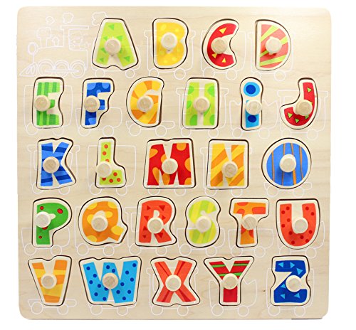 -. Feature : Made of real wood,non-toxic and durable,safe for kids. / This wooden alphabet puzzle board is brightly colored by beautiful pictures,help to learn the letters and colors. / There is also lowercase letter matches each uppercase letter in the bottom,which is easier for beginners. / Helps to learn the alphabet and lowercase letters at the same time. / Pass ASTM and CE Test.An ideal gift for kids learning alphabet.Recommend 3 years up.
