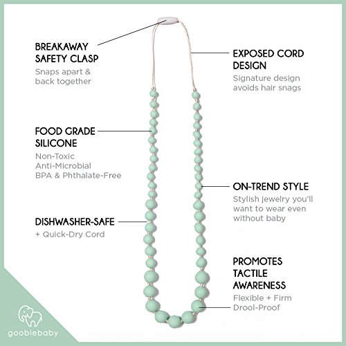 Goobie Baby Audrey Silicone Teething Necklace for Mom to Wear, Safe BPA Free Beads to Chew - Mint