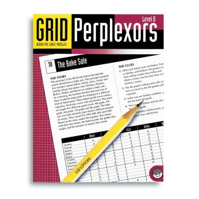 -. Feature : TOYS THAT TEACH: Our simple yet innovative book makes learning logic possible for every level of ability. As children and students use the clues to cross out possibilities in each puzzle, they see information organizing itself into a sensible pattern. By discarding the old complicated matrix and using a process of elimination, a simple method is used to teach complex skills / GREAT FOR STANDARDIZED TESTS: By practicing the process of elimination, children and students can prepare themselves for standardized test which reward logical thinking. Students will no longer be "tricked" by questions which require them to draw a conclusion, and test scores will naturally improve. Not only are our Perplexors fun, but they provide dramatically improved results on both tests and cognitive abilities / CHALLENGING PUZZLES: As students progress through the levels, each Perplexors logic puzzle book increases in difficulty. Designed for grades 7-9, Perplexors: Level D is the second to last level of challenge and provides older students with an advanced level of problems that are sure to engage and challenge / INDIVIDUAL OR GROUP USE: These logic puzzles present a great exercise for entire classrooms or single students alike. They even give students an opportunity to sharpen their skills while away from school, be it summer vacation or just an after school weekday / SPECIFICATION: Package includes (1) Perplexors: Level D book with 50 puzzles / From the author of our best -selling Perplexors series comes grid Perplexors / Use deductive logic skills to chart clues and eliminate incorrect possibilities to find the correct answer / 50 puzzles per book / Solutions included / Grid your way to the solution