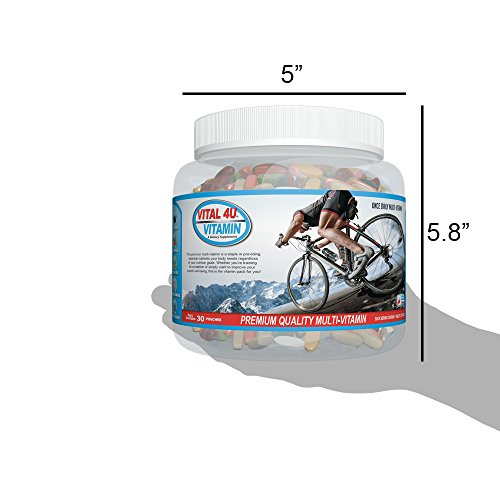 -. Binding : Health and Beauty -. Brand : Vital 4U -. EAN : 0090097111123 -. Feature : Each container includes 30 Individual Packets of 11 Tablets and 3 Softgels per serving. / The most complete and comprehensive multivitamin formula, high performance blend includes Vitamin A, Vitamin B Complex, Vitamin E, Vitamin B12, Lecithin, Bee Pollen, Vitamin C Complex, Power Complex with Vitamin D3 and D2, Minerals, Amino Acids, Phyto Greens for digestive health and an Herbal Complex for energy and mental focus. / There is no better way to supplement your daily diet lacking in essential and critical ingredients. / Perfect for athletes competing in endurance sports such as cycling, marathons, swimming, soccer, football, basketball baseball, weight training and more! Helps with recovery and overall well being. / Helps promote overall healthy body functions. -. IsAdultProduct : 0 -. Label : Precise Nutrition Int'l -. Manufacturer : Precise Nutrition Int'l -. MPN : 01510 -. PackageQuantity : 1 -. PartNumber : 01510 -. ProductGroup : Health and Beauty -. ProductTypeName : HEALTH_PERSONAL_CARE -. Publisher : Precise Nutrition Int'l -. Studio : Precise Nutrition Int'l -. Title : Vital 4U Vitamin Premium and Complete Multivitamin for Men and Women, 30 Day Supply -. UPC : 090097111123
