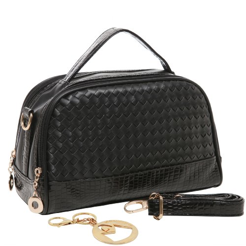 - Title : MG Collection KARA Black Faux Crocodile Woven Office Tote Style Shoulder Bag