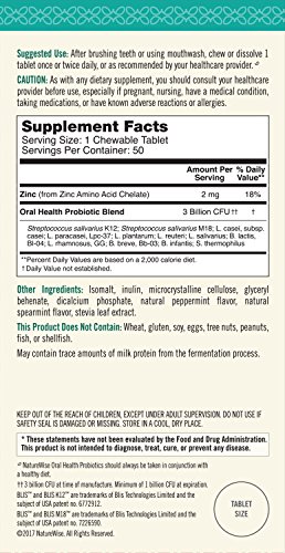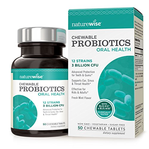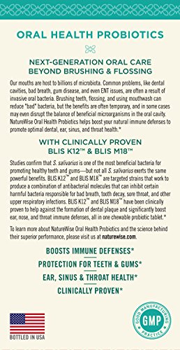 NatureWise Oral Health Probiotics is a chewable probiotic tablet that delivers 3 billion CFU and 12 targeted strains of beneficial oral microbiota—three times as many as the top-selling brand. Our unique formula contains clinically proven, patented strains BLIS K12 and BLIS M18, which are designed to colonize and persist in the oral cavity—even days and weeks after supplementation.*