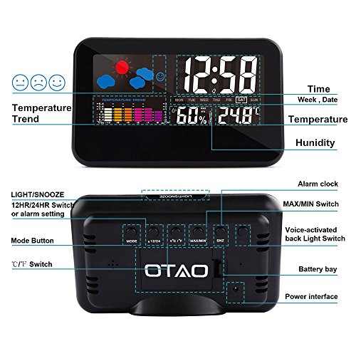 Otao Hygrometer Display 12-hour temperature trend curve when each reading, allowing you to react ahead of time, such as wear hat.