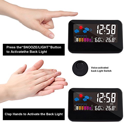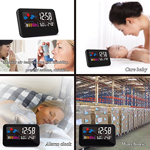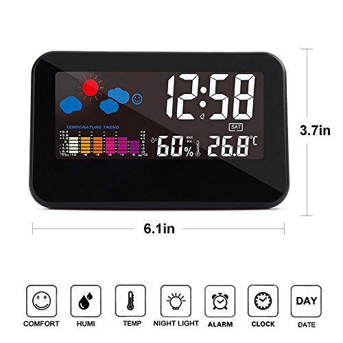 Multiple Functional Monitor, work as hygrometer, thermometer, temperature trend, alarm clock, calendar, week, weather conditions,comfort icon ect.