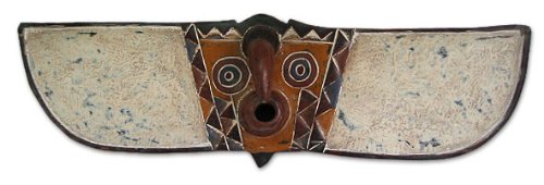 NOVICA Decorative Sese Wood Mask, White, 'Bwa Butterfly Spirit'