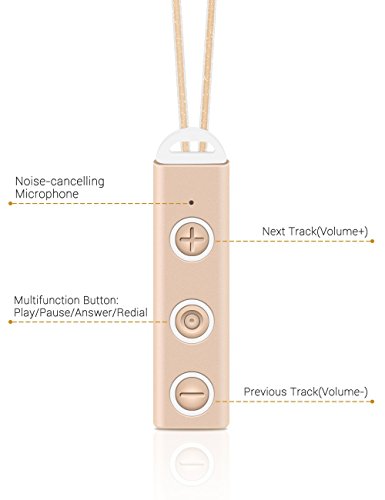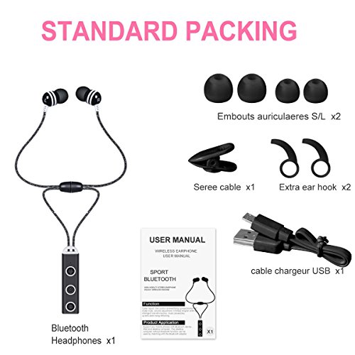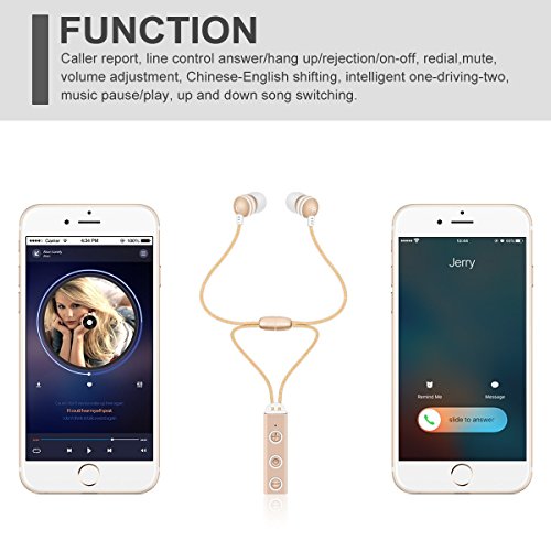 -. Feature : Wireless Neckset: magnetic necklace style ensure no wires swinging in the air when excising / High-fidelity stereo: steady connection via Bluetooth 4.1 to play crisp, perfect stereo sound / CVC 6.0 noise cancellation ensures high quality of every call, connect 2 device simultaneously / Comfortable Fit: ergonomic earbuds provides extremely comfortable and secure fits in the ear / Functions: play/pause/skip song, volume +/-, mute, answer/reject/redial calls, voice prompt